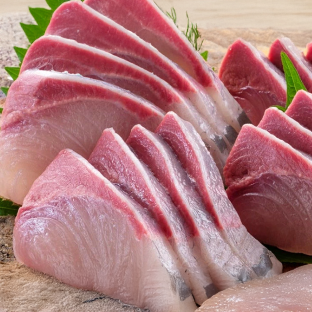 日向灘に面した、宮崎県延岡市北浦町で養殖されている「金太郎ぶり」を使用しています。宮崎の潮流の早い好漁場でプロが大切に育て、美味しい時期を見極めて漁獲されたブリ。1つのイケスに対する魚の数を標準よりも少なくし、豊富な運動量をキープし、生育におけるストレスを減らし健康体でさっぱりとした脂ののった魚に仕上げられています。